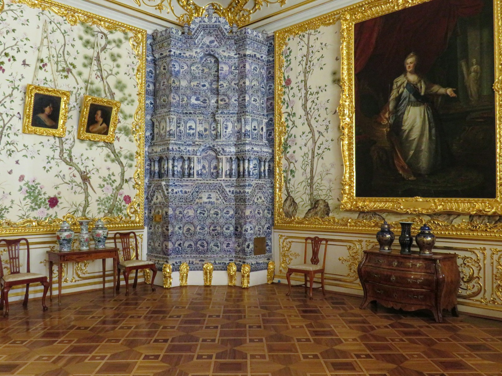 a room with a painting on the wall and paintings on the wall