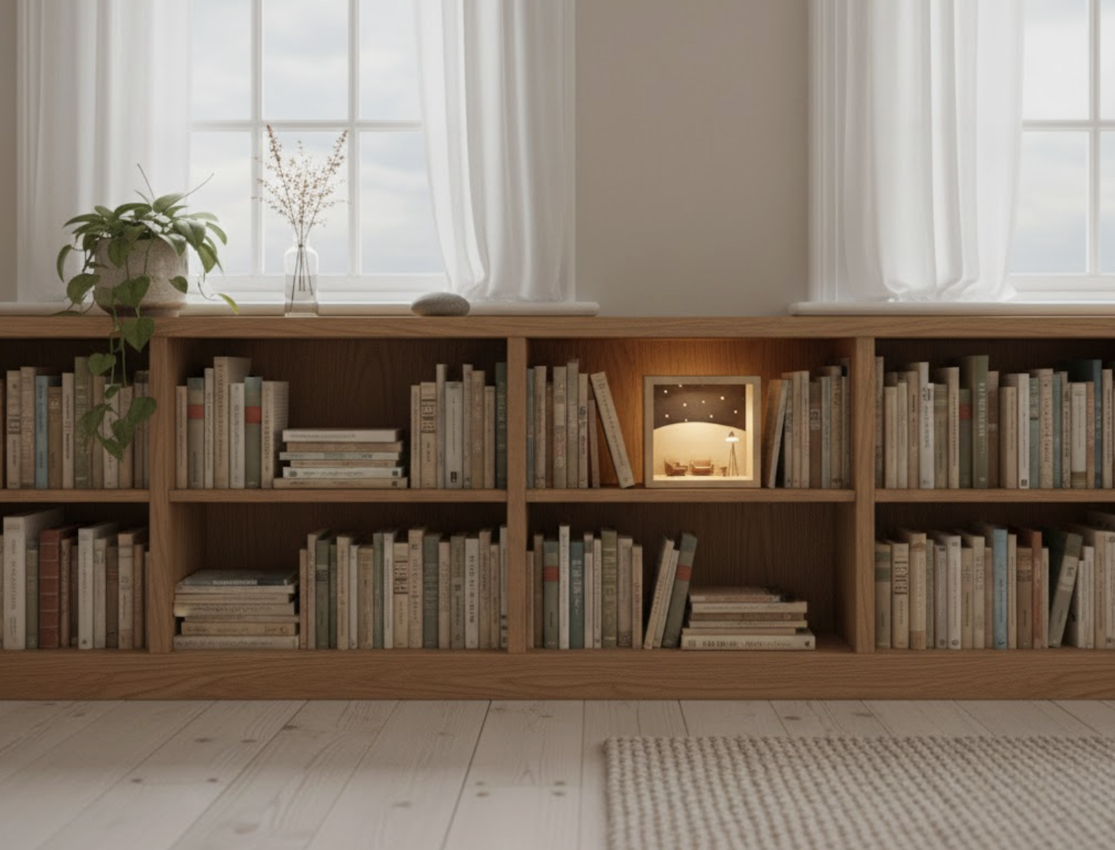 Wat een book nook zo bijzonder maakt, is hoe voorzichtig het een ruimte verandert. Het dwingt niets af, maar nodigt uit. Het laat een kast spreken, geeft een extra laagje diepte en vertelt een klein verhaal dat verder gaat dan decoratie.